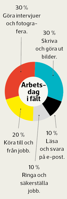 - 30 % – Göra intervjuer och fotografera.