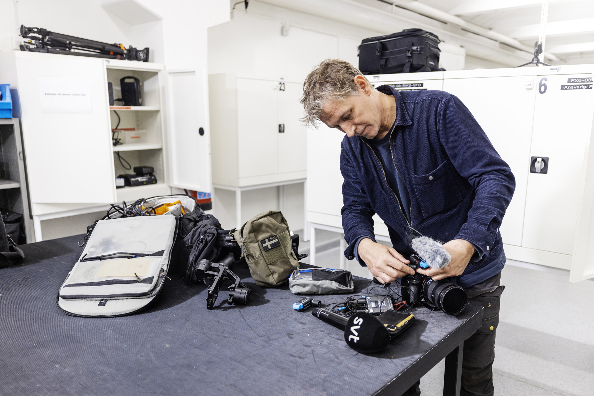 Tv-fotografen Emil Larsson älskar sitt jobb på Sveriges Television. ”Det är underbart här. Man vet ju inte var man kommer att vakna nästa dag”.